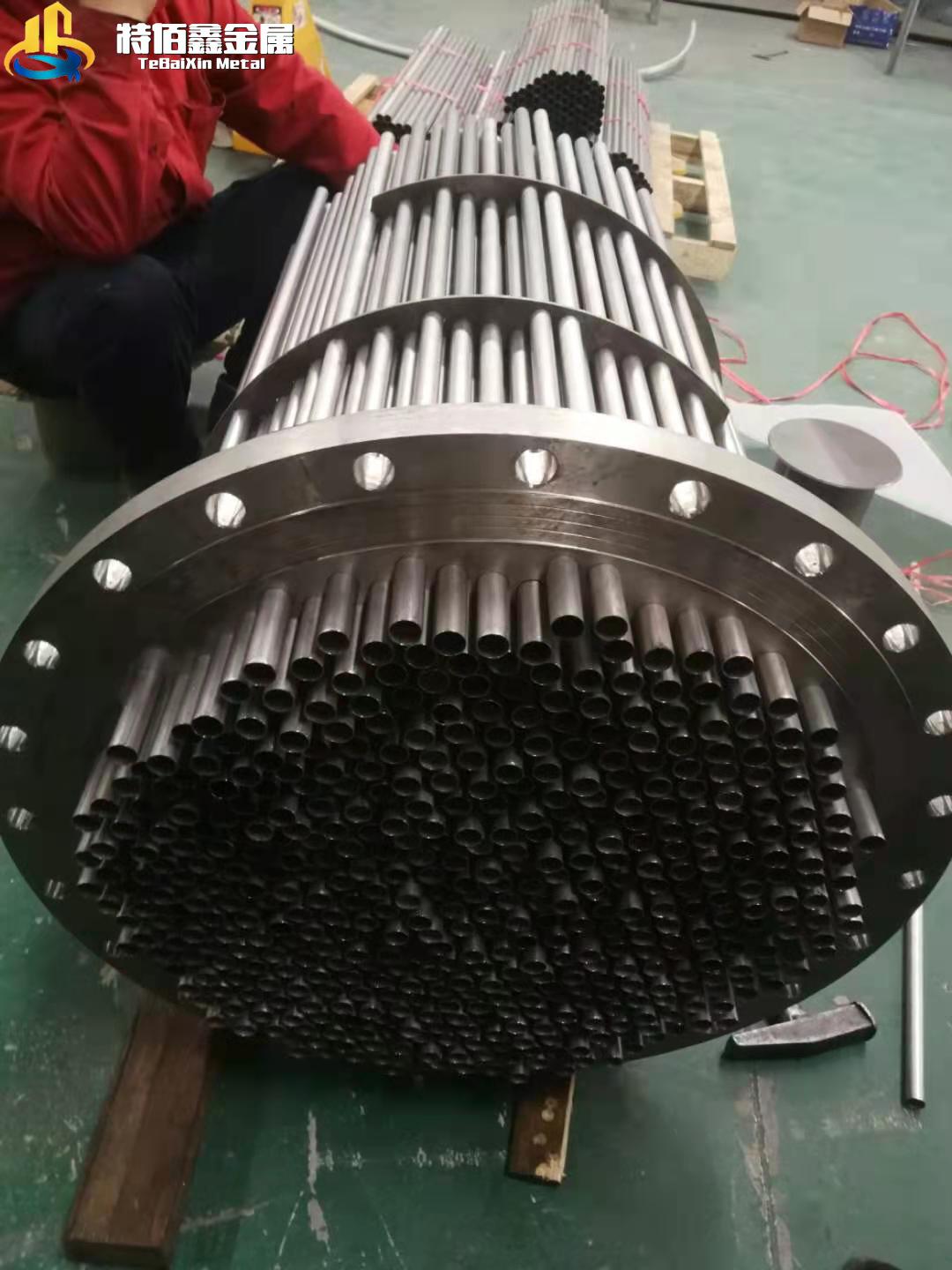 对钛管的清理,视钛管表面质量而定,表面氧化不严重的钛管,管外表面特别是管端100mm处,用丙酮洗干净后穿管,焊接前再次用丙酮抹洗管头及管内孔。